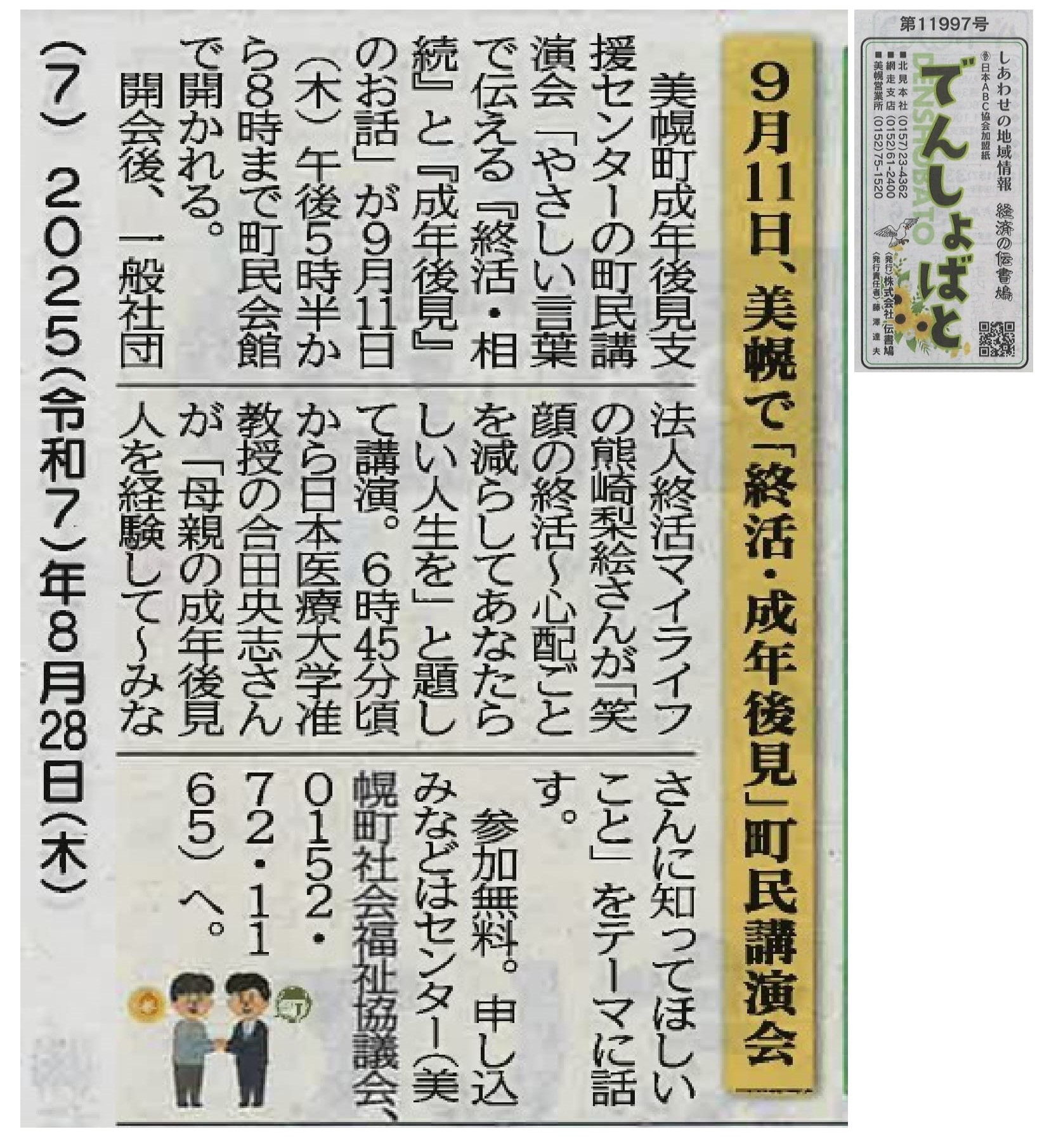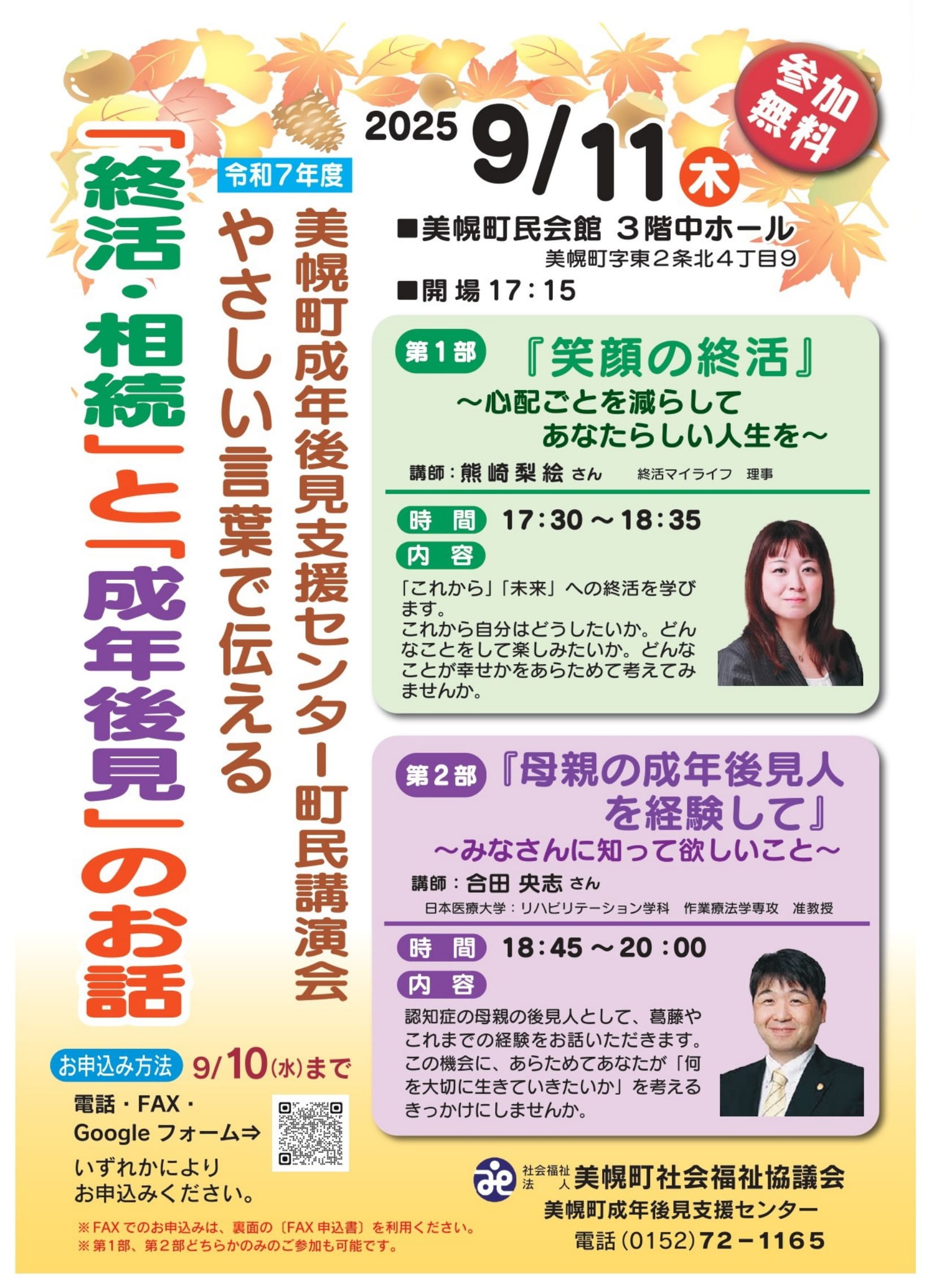 9/11「終活・相続」と「成年後見」の講演会を開催します