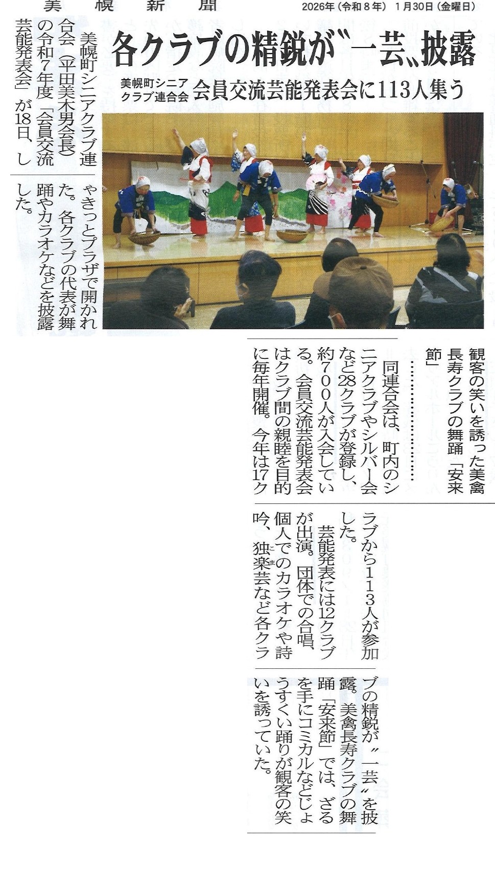 美幌新聞にシニアクラブ連合会「会員芸能発表会」が掲載されました